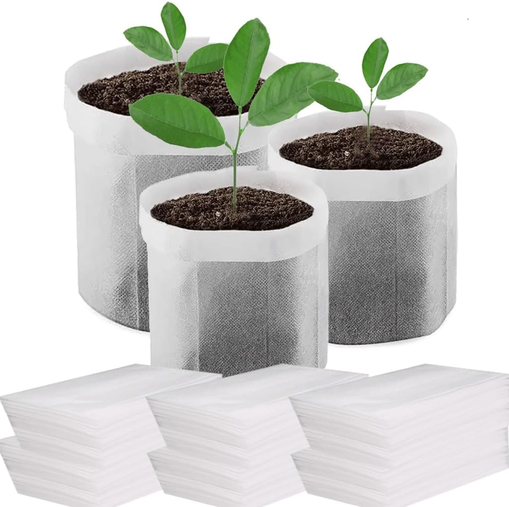 Growing bags Material: Eco-friendly and safe PE material, no need to remove the bag when transplanting. Have excellent water permeability, water and nutrient can penetrate naturally, roots won't decay and seedlings will grow better.Grow Bag Features: Corrosion-resistant, durable, water-saving and drought-resistantgrowing bags High survival rate: fast growth, ensure the plant grow well. Prevent the seedling from forming entangling roots and decaying roots.Vegetable grow bags is ideal for: Excellent for bedding plants, tree seedlings, tomatoes, bell peppers, cucumbers.Grow Bag Package Included: 50Pcs × Plant growth bag