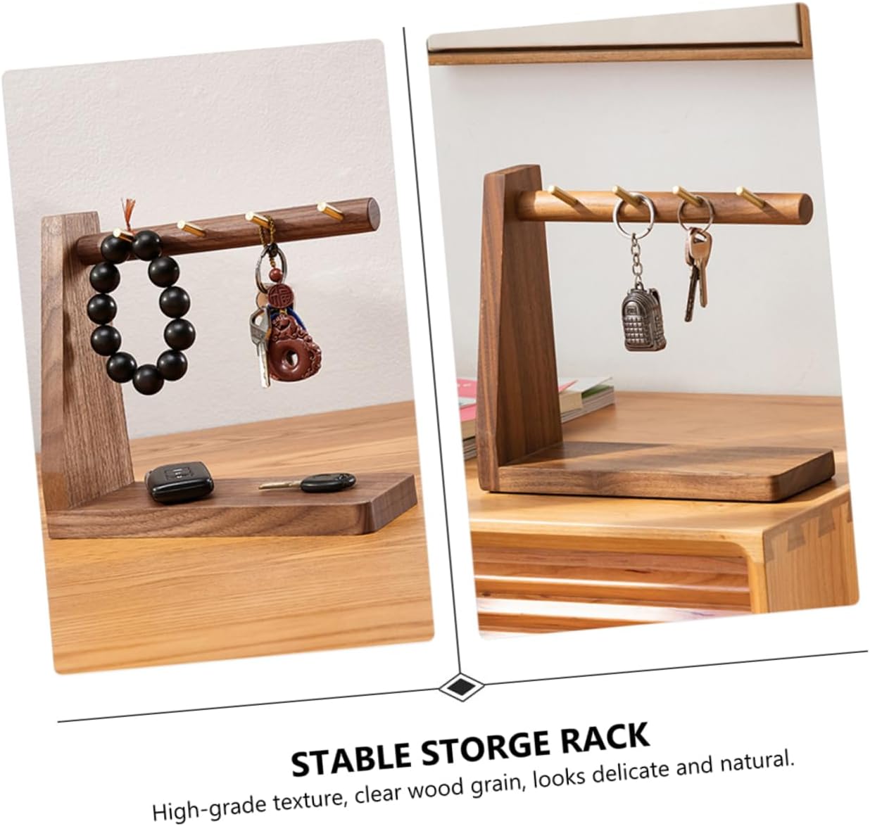 Package List 1 x key holder Features -Color: Walnut car key. -Size: About 22.00X20.00X8.00cm / 8.65X7.86X3.14inch storage bracket. -Material: Walnut and copper practical key bracket. -This hook with retro style appearance, can well match with your decoration stable storage rack. -It is channel space key storage and desktop decoration wooden. -This storage shelf provides enough space for basic items in narrow place holders. -You can place it on the door cabinet to remind you of taking keys out wood key organizer. -With 4 hooks and and 1 , which can store door keys and car keys bracelet rack.Goods Descriptionretro storage rack This hook with retro style appearance, can well match with your decoration.vintage key rack This storage shelf provides enough space for basic items in narrow place.key hanging rack With 4 hooks and and 1 , which can store door keys and car keys.Tabletop Key Hanging It is channel space key storage and desktop decoration.hooks for car You can place it on the door cabinet to remind you of taking keys out
