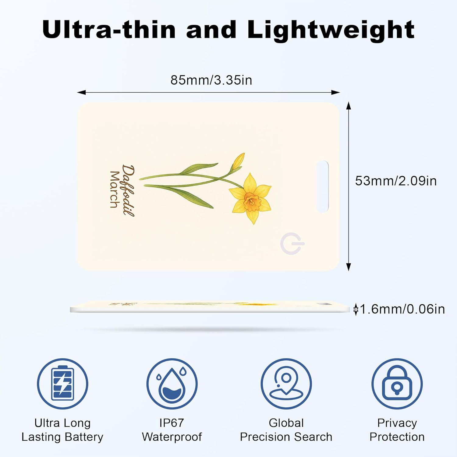 Wallet Tracker Card – Slim Bluetooth Tracker, IP68 Waterproof, Rechargeable Wireless Locator for Wallets, Luggage & Passports Compatible with Find My on iPhone (March Flowers)